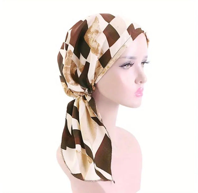 Maryam's Diamond Style Floral Print Chemo, Turban Head Cap